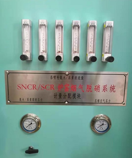 還原劑依次通過壓力表、流量傳感器、電動執行球閥及角座閥,按照控制系統給定的流量設定計量輸出,在分配穩壓緩存后以相同的壓力分別經過可調節浮子流量計被送到還原劑出口管道。